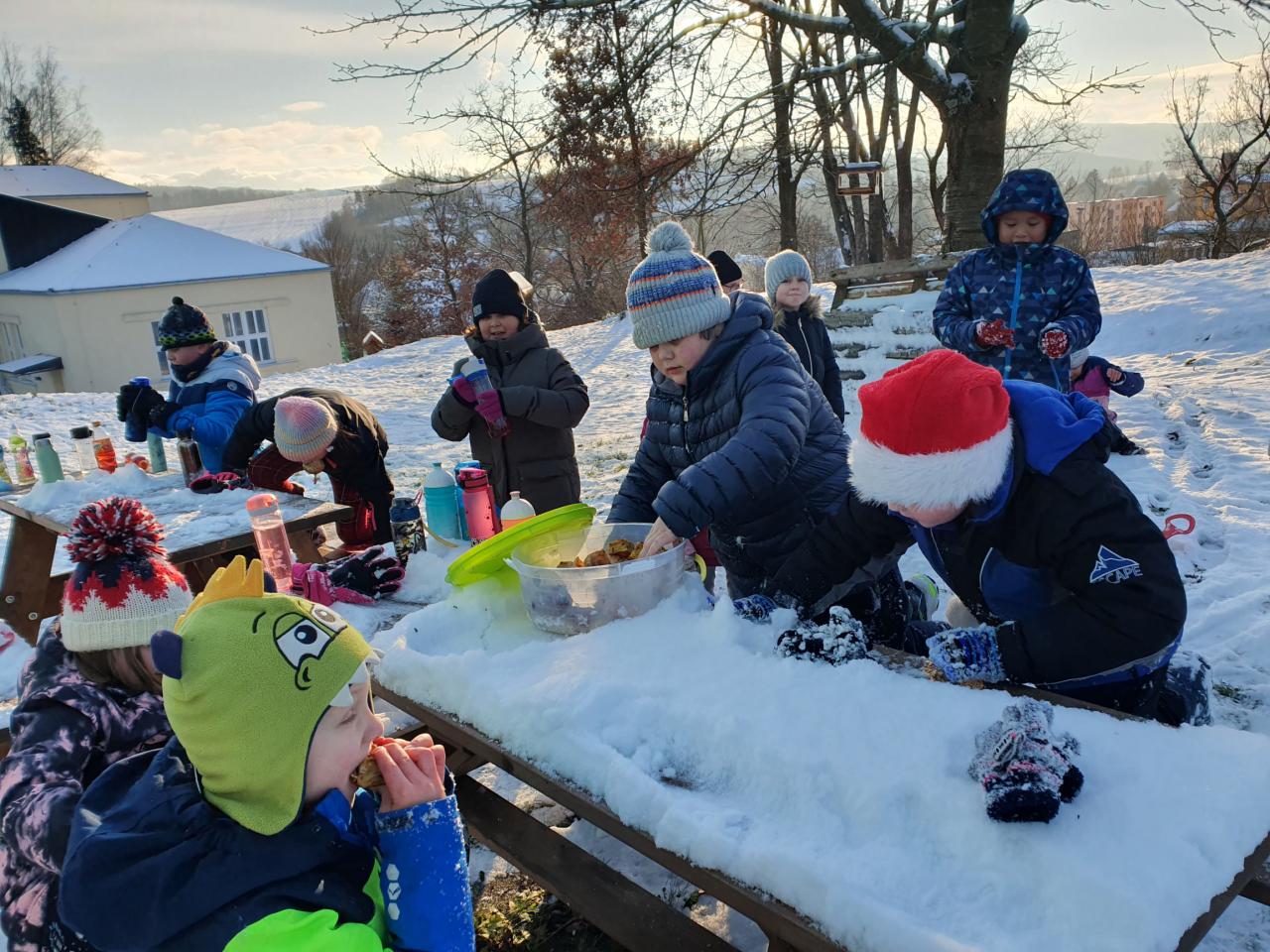 Prosinec, advent, čertovská babička s vánočním příběhem a tradicemi, čertíci i andělé, tvoření a smích, dárečky, svícínky, ozdobičky, pohádky a hlavně sníh, pokusy se sněhem, sněhuláci, koulování a bobování...tak krásný prosinec jsme v družině zažili.