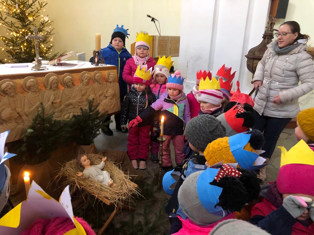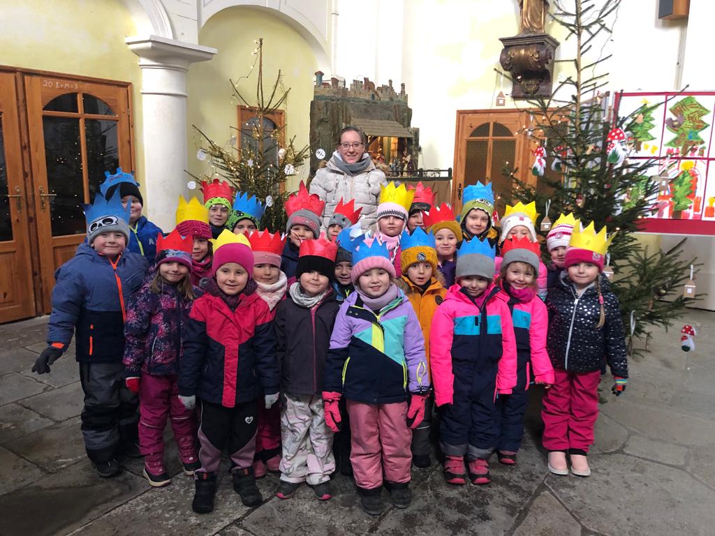Děti, jako mudrcové- Kašpar x Melichar a Baltazar navštívily kostel. Prohlídly si Betlém a vánoční výzdobu, na které se také podílely.