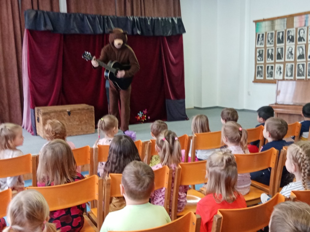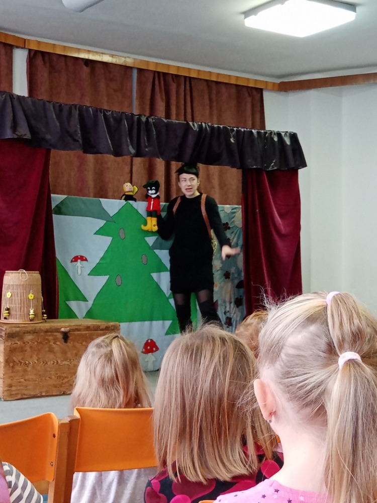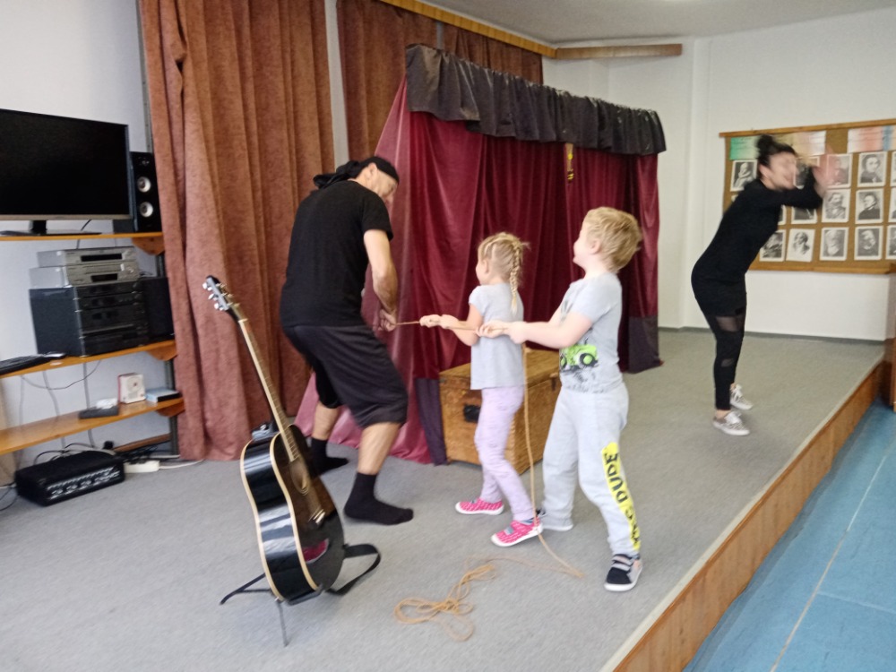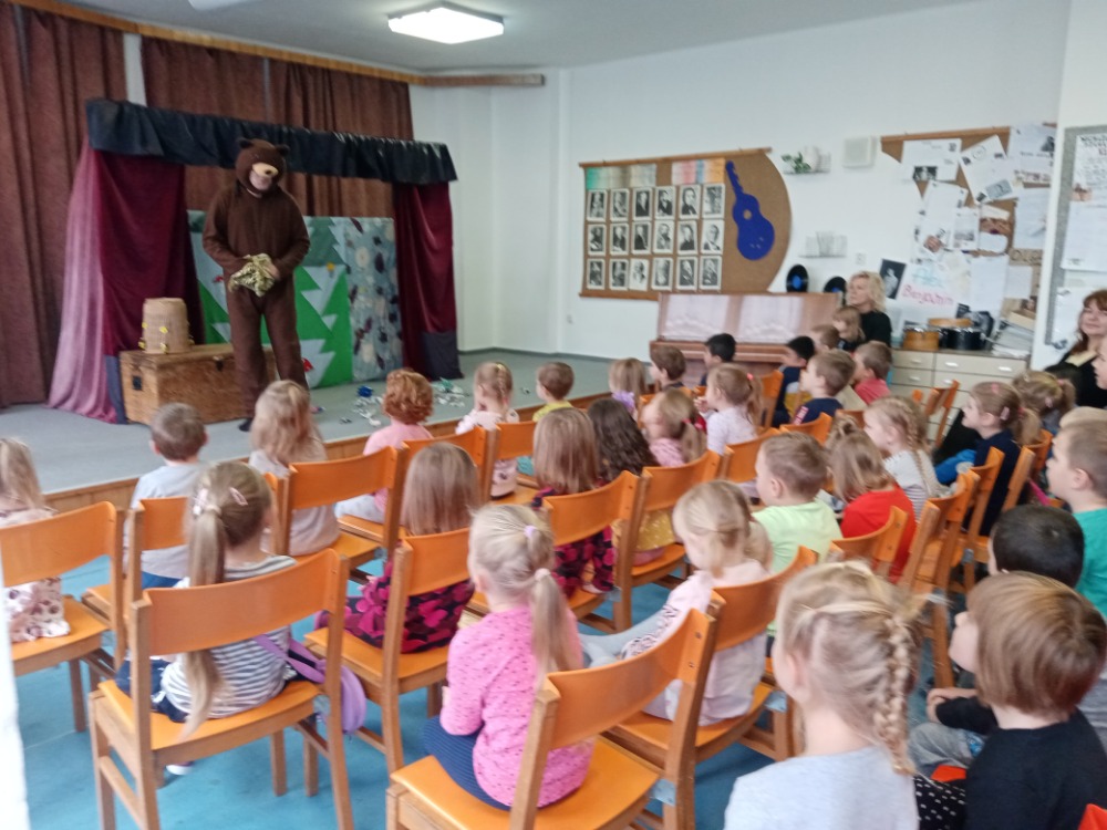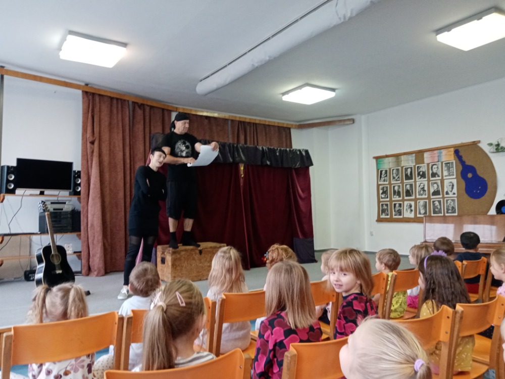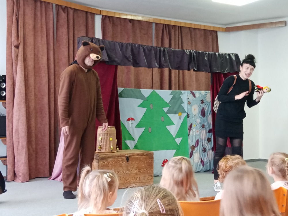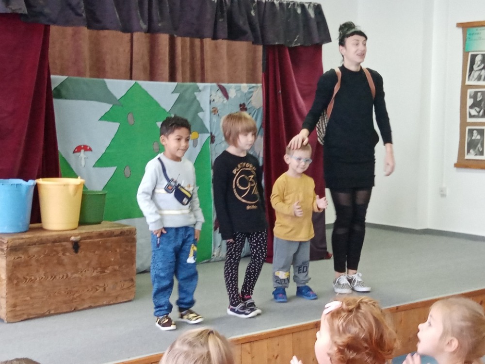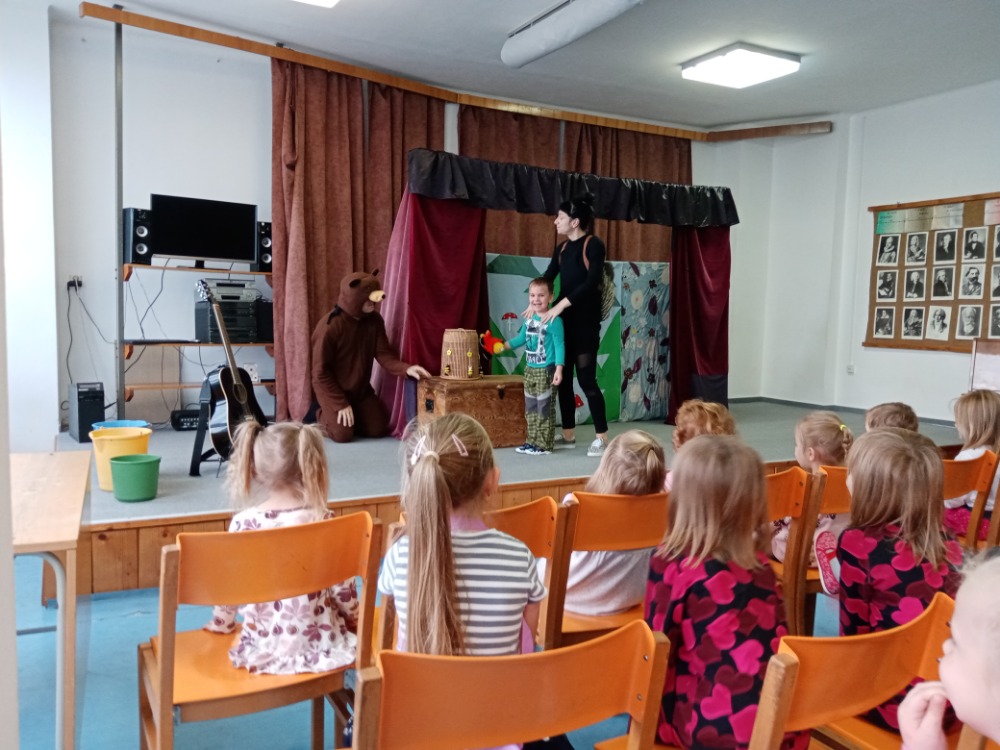 Pan Pohoda se Soničkou a děti s nimi hrají divadlo.