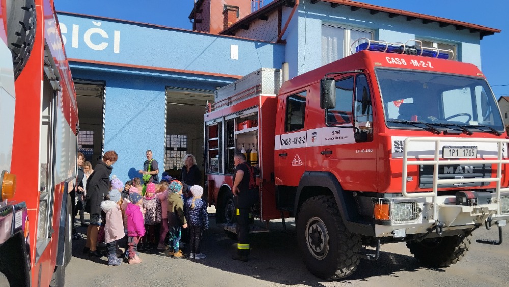 Kolem hasičárny často chodíme. Co je uvnitř schované? Dnes j se děti podívaly dovnitř.