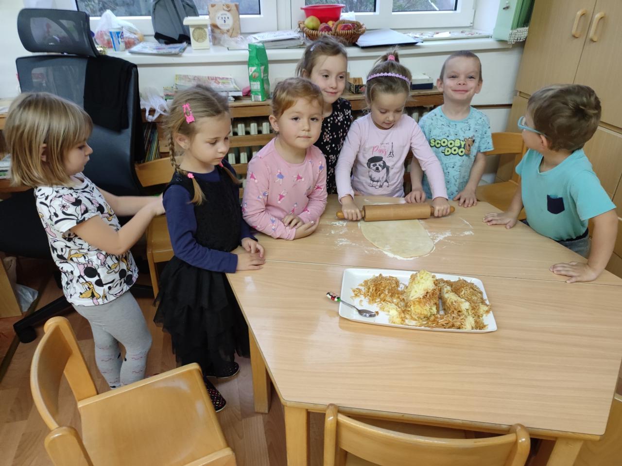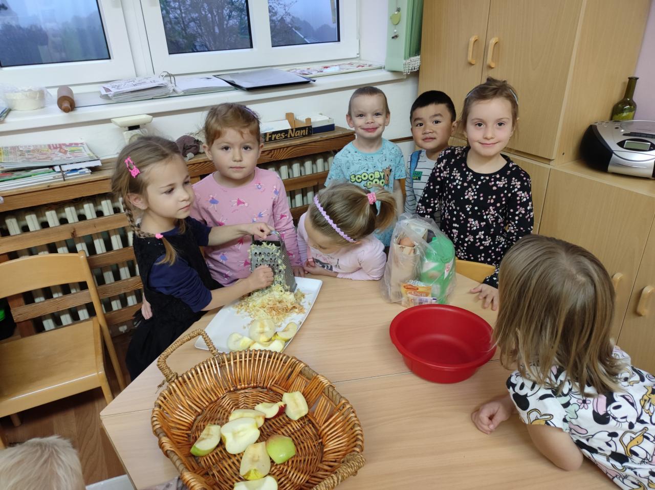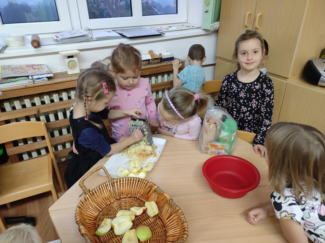 Děti z Beruškové třídy přinesly jablíčka a upekly si štrůdl.