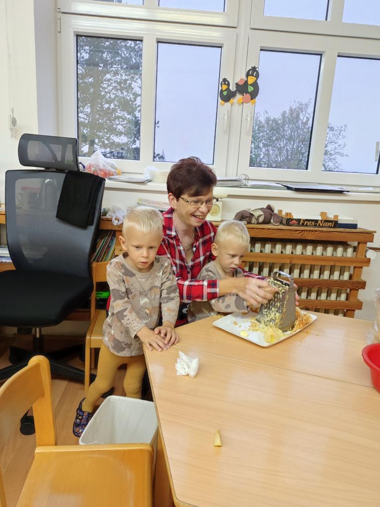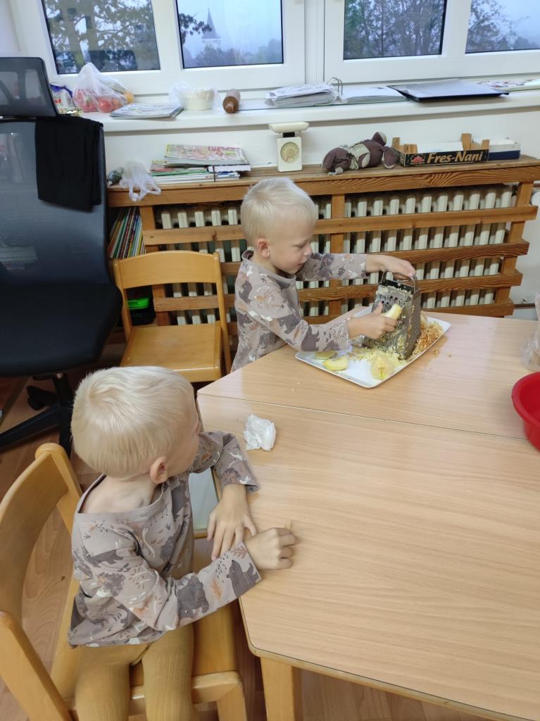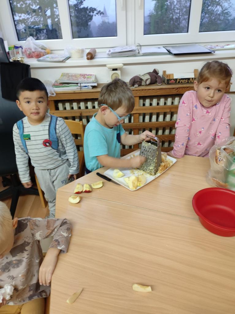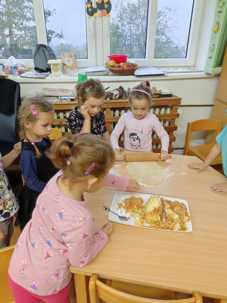 Děti z Beruškové třídy přinesly jablíčka a upekly si štrůdl.