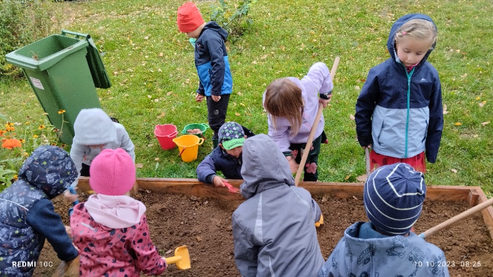 Děti ze Sluníčkové třídy uklízely školní záhony. Z brambor si upekly brambůrky.