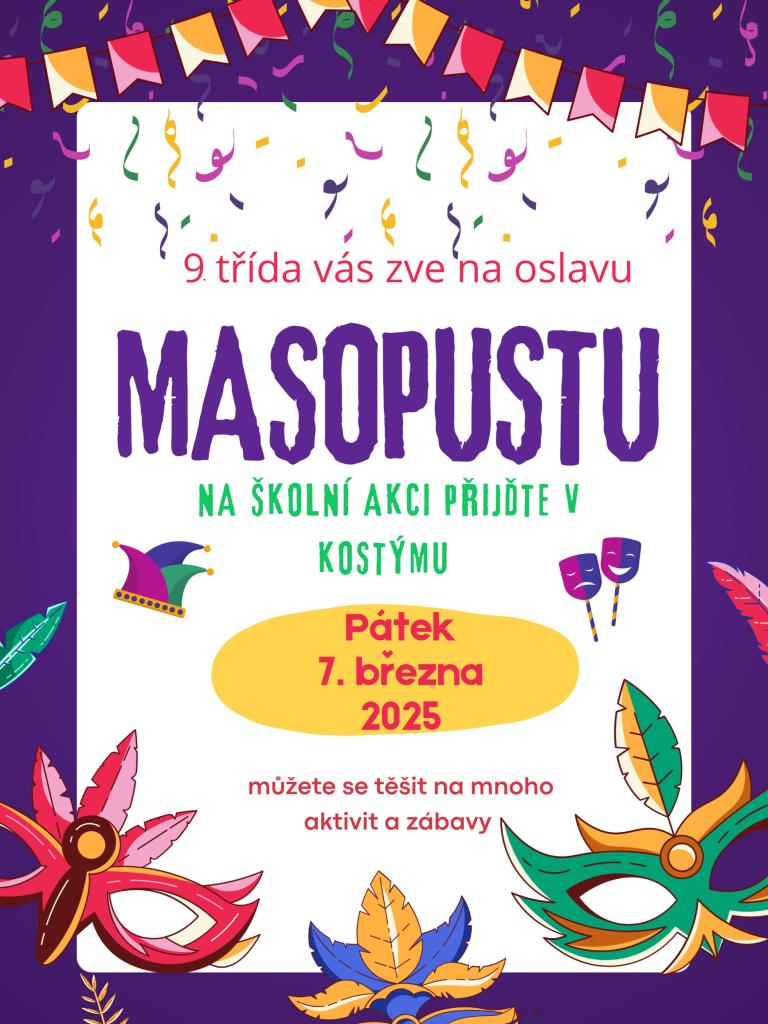 V pátek 7. 3. 2025 přijďte všichni v maskách, bude veselo...