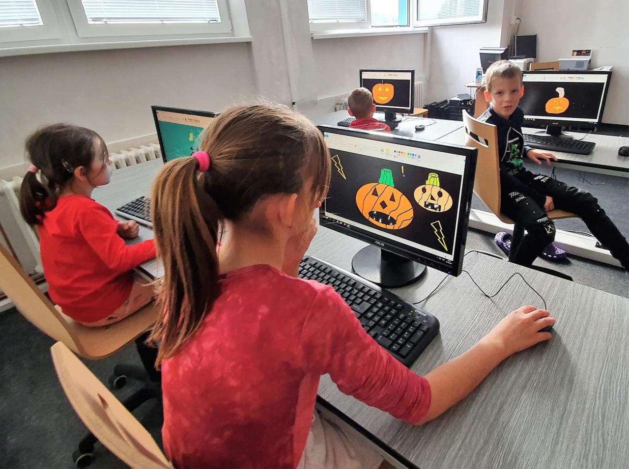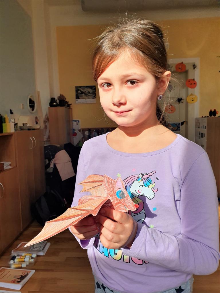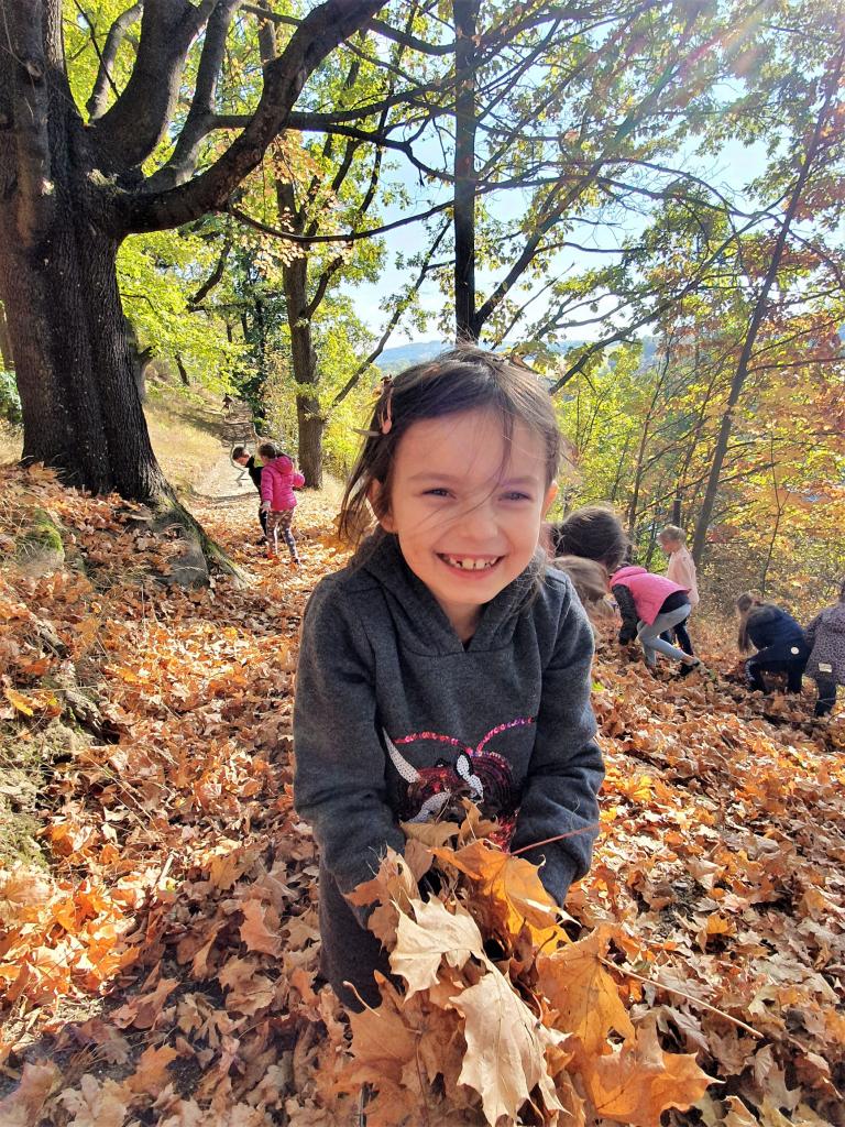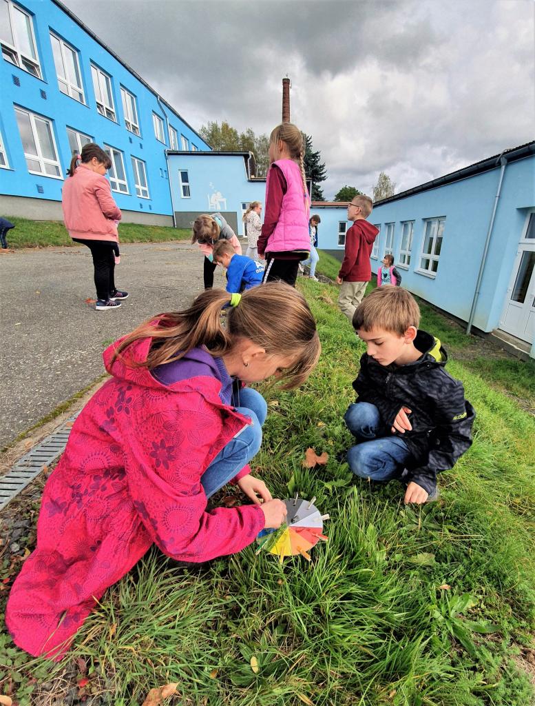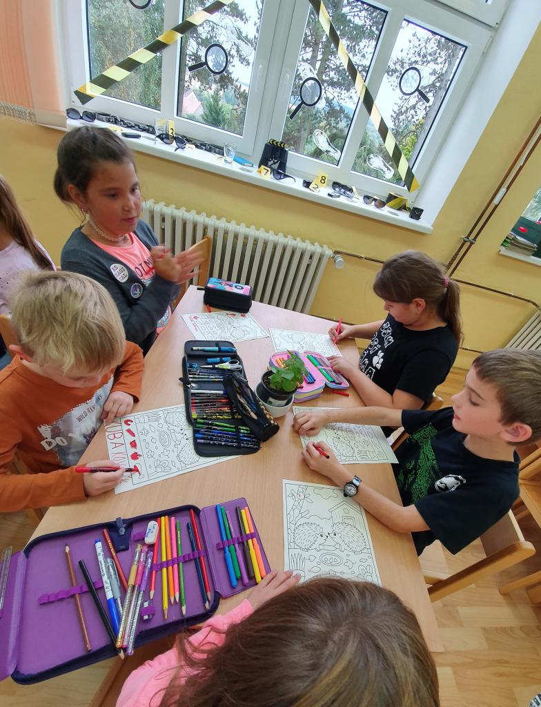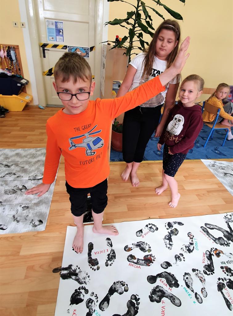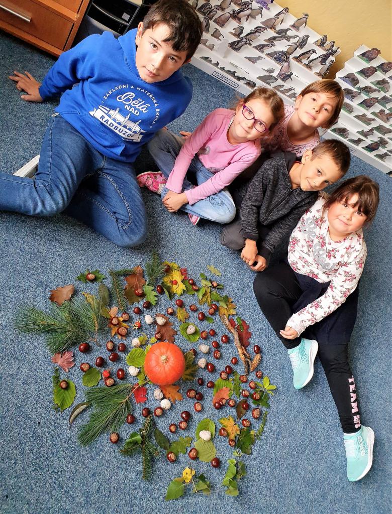 Říjen byl plný detektivního pátrání a sledování. V rámci trasologie jsme zkoumali otisky a odlitky chodidel. Následně jsme porovnávali velikost i tvar chodidla, kdo má nožky ploché a kdo správně klenuté. S detektivem Fouskem jsme vyřešili krádeže v pražských klenotnictvích a víme, co znamená : "KRADE JAKO STRAKA". Založili jsme si super tajné složky na vyřešené případy. Máme rádi hledačky - pravidelně hledáme skryté obrázky v obrázku a posilujeme naši trpělivost a pozornost. Malovali jsme jablíčka, hrušky a dýně v aplikaci malování na PC a připravili si i podzimní výzdobu oken. Pozorovali jsme změny v okolní přírodě, sbírali a ochutnávali jsme jablíčka, ořechy, bylinky i dýně. Z přírodnin jsme si stavěli krásně barevné mandaly. Velké detektivní pátrání bylo i při hledání přírodnin podle barev, ale zvládli jsme zaplnit celý barevný kruh. Rádi jsme si chodili hrát do barevného listí do parku. Už víme, jaký je rozdíl mezi netopýrem a kaloněm a víme jak vyřezat halloweenskou dýni. Malovali jsme veselé dráčky ve třídě i křídou na nástupišti a když zafoukal vítr, pouštěli jsme velké draky na školním hřišti.
