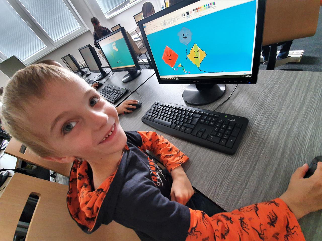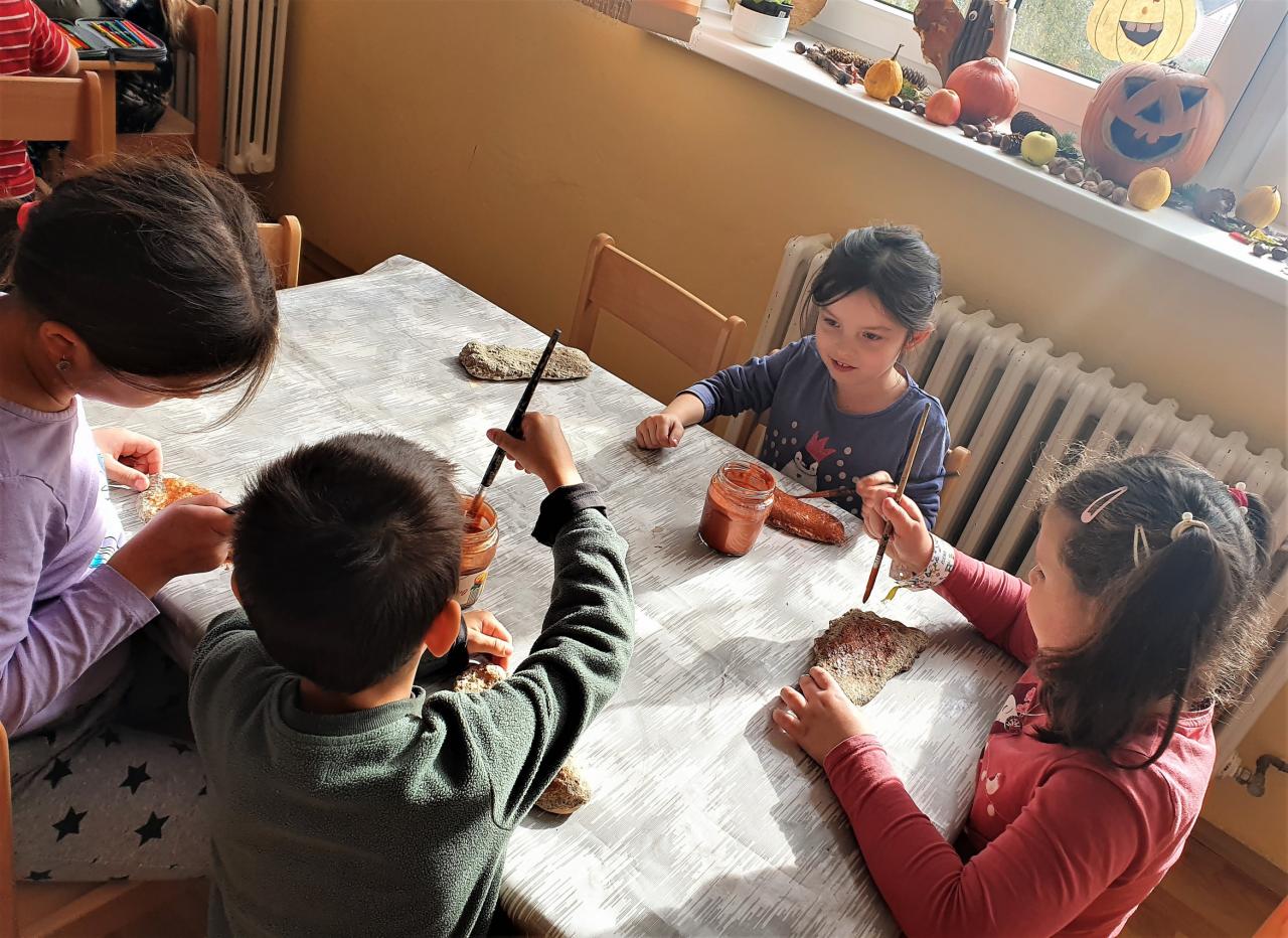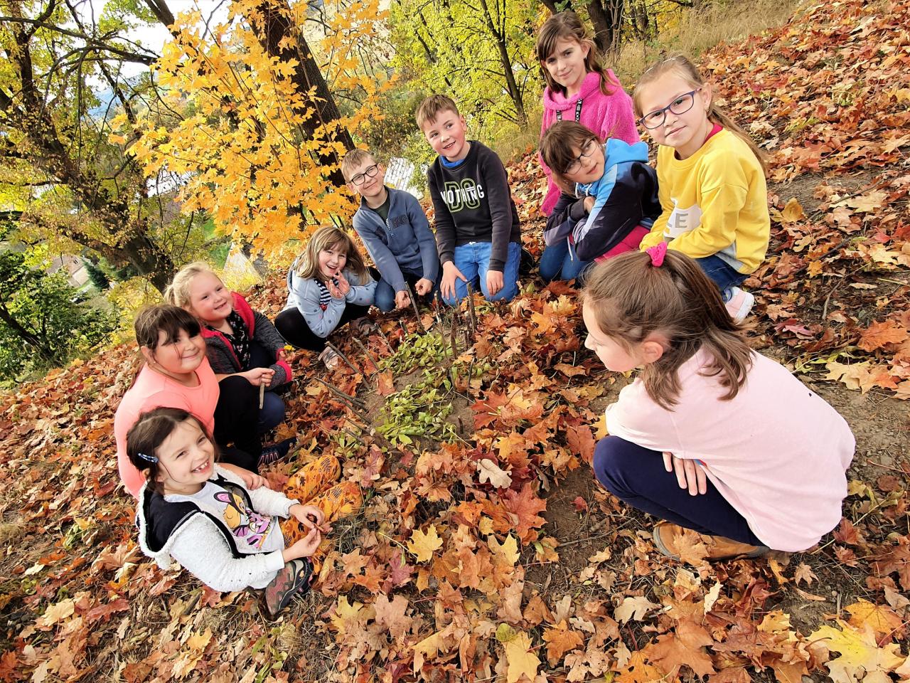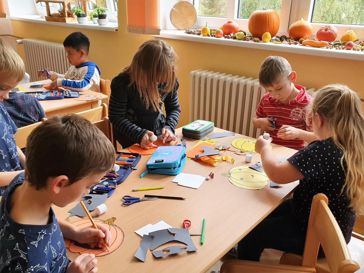 Říjen byl plný detektivního pátrání a sledování. V rámci trasologie jsme zkoumali otisky a odlitky chodidel. Následně jsme porovnávali velikost i tvar chodidla, kdo má nožky ploché a kdo správně klenuté. S detektivem Fouskem jsme vyřešili krádeže v pražských klenotnictvích a víme, co znamená : "KRADE JAKO STRAKA". Založili jsme si super tajné složky na vyřešené případy. Máme rádi hledačky - pravidelně hledáme skryté obrázky v obrázku a posilujeme naši trpělivost a pozornost. Malovali jsme jablíčka, hrušky a dýně v aplikaci malování na PC a připravili si i podzimní výzdobu oken. Pozorovali jsme změny v okolní přírodě, sbírali a ochutnávali jsme jablíčka, ořechy, bylinky i dýně. Z přírodnin jsme si stavěli krásně barevné mandaly. Velké detektivní pátrání bylo i při hledání přírodnin podle barev, ale zvládli jsme zaplnit celý barevný kruh. Rádi jsme si chodili hrát do barevného listí do parku. Už víme, jaký je rozdíl mezi netopýrem a kaloněm a víme jak vyřezat halloweenskou dýni. Malovali jsme veselé dráčky ve třídě i křídou na nástupišti a když zafoukal vítr, pouštěli jsme velké draky na školním hřišti.