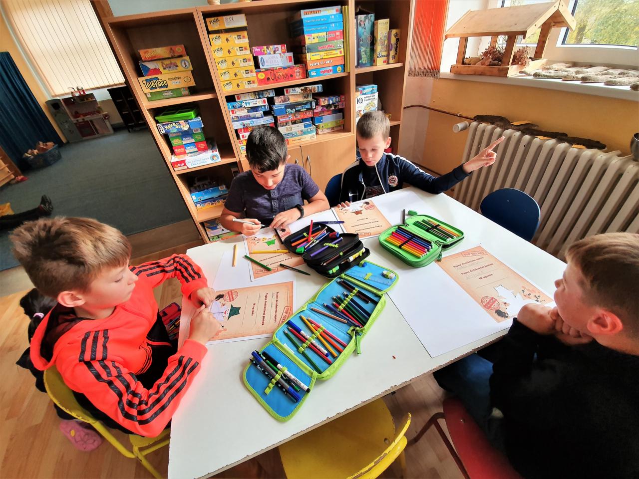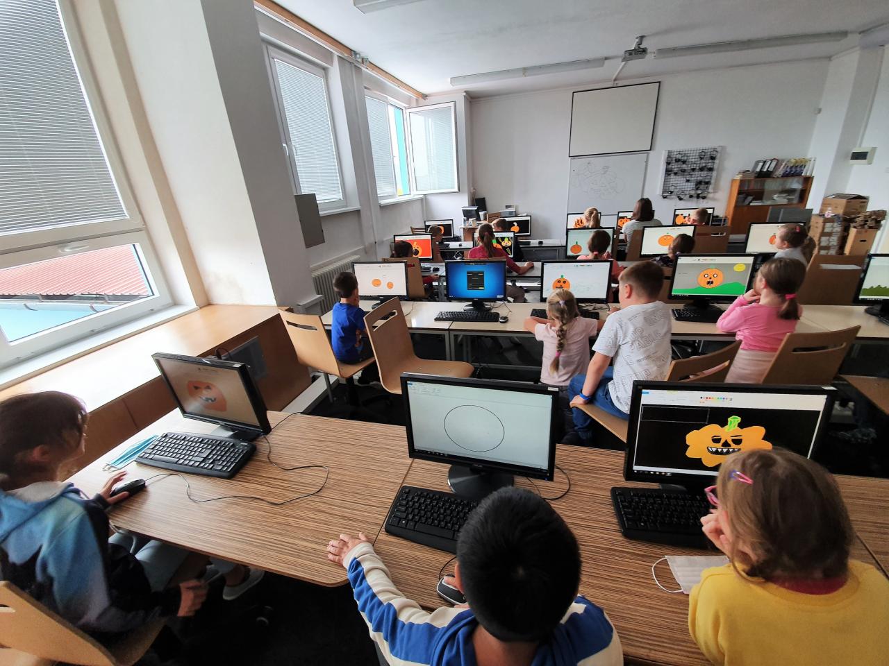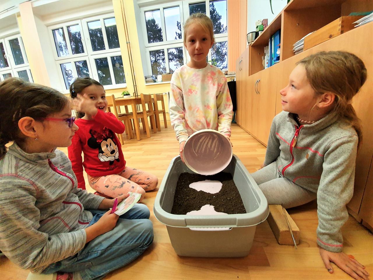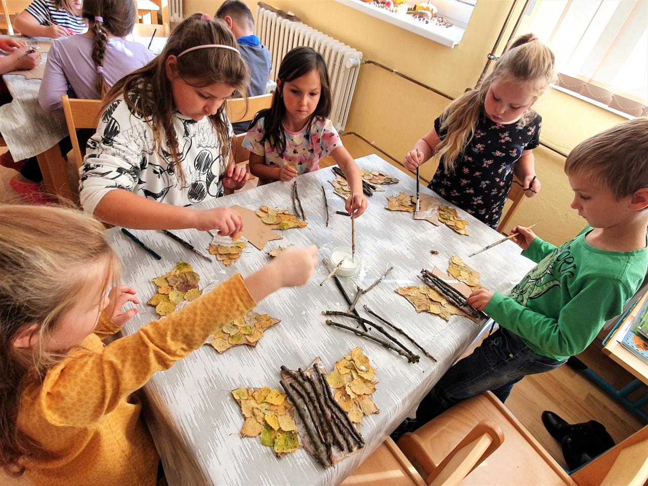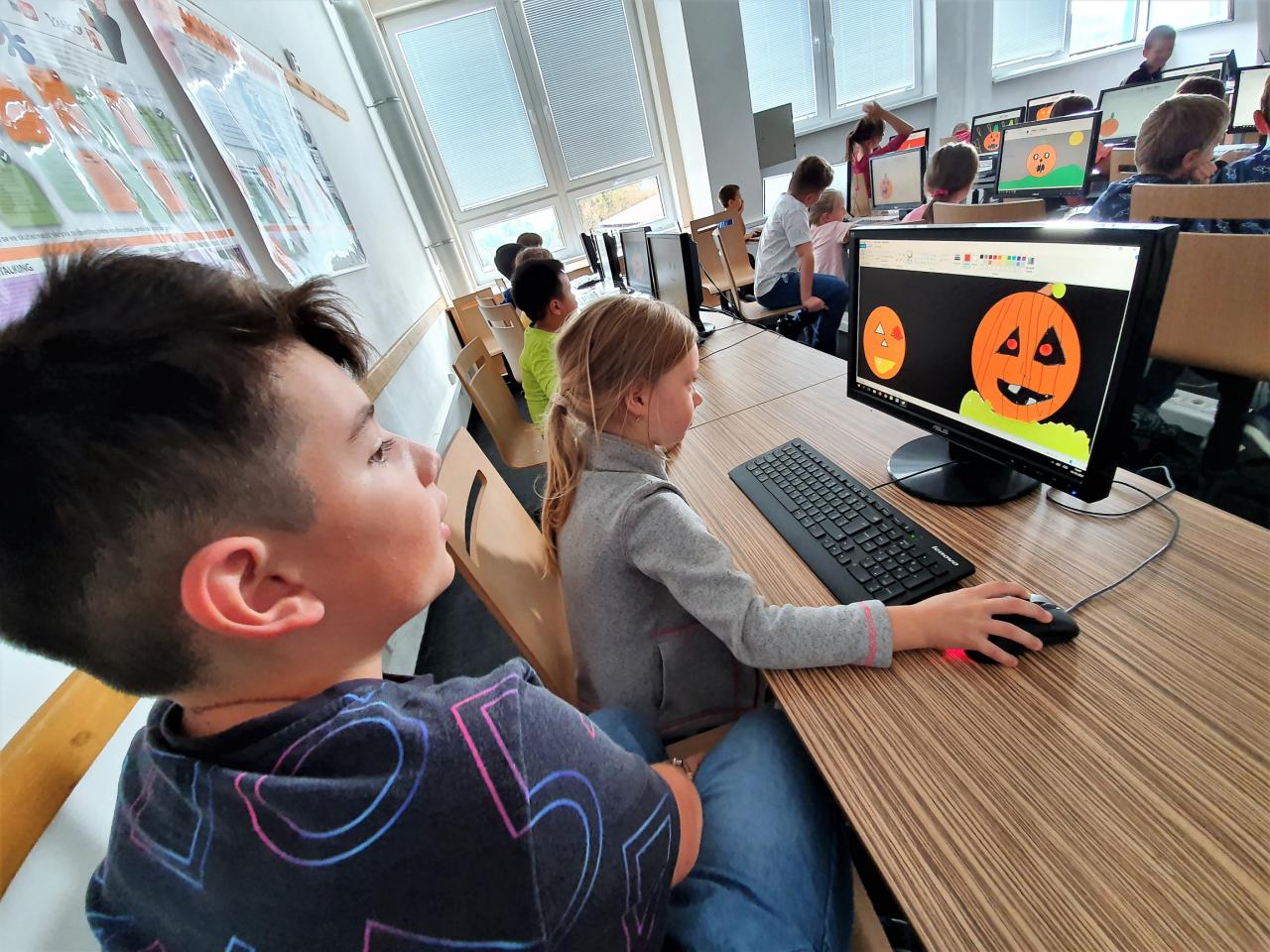 Říjen byl plný detektivního pátrání a sledování. V rámci trasologie jsme zkoumali otisky a odlitky chodidel. Následně jsme porovnávali velikost i tvar chodidla, kdo má nožky ploché a kdo správně klenuté. S detektivem Fouskem jsme vyřešili krádeže v pražských klenotnictvích a víme, co znamená : "KRADE JAKO STRAKA". Založili jsme si super tajné složky na vyřešené případy. Máme rádi hledačky - pravidelně hledáme skryté obrázky v obrázku a posilujeme naši trpělivost a pozornost. Malovali jsme jablíčka, hrušky a dýně v aplikaci malování na PC a připravili si i podzimní výzdobu oken. Pozorovali jsme změny v okolní přírodě, sbírali a ochutnávali jsme jablíčka, ořechy, bylinky i dýně. Z přírodnin jsme si stavěli krásně barevné mandaly. Velké detektivní pátrání bylo i při hledání přírodnin podle barev, ale zvládli jsme zaplnit celý barevný kruh. Rádi jsme si chodili hrát do barevného listí do parku. Už víme, jaký je rozdíl mezi netopýrem a kaloněm a víme jak vyřezat halloweenskou dýni. Malovali jsme veselé dráčky ve třídě i křídou na nástupišti a když zafoukal vítr, pouštěli jsme velké draky na školním hřišti.